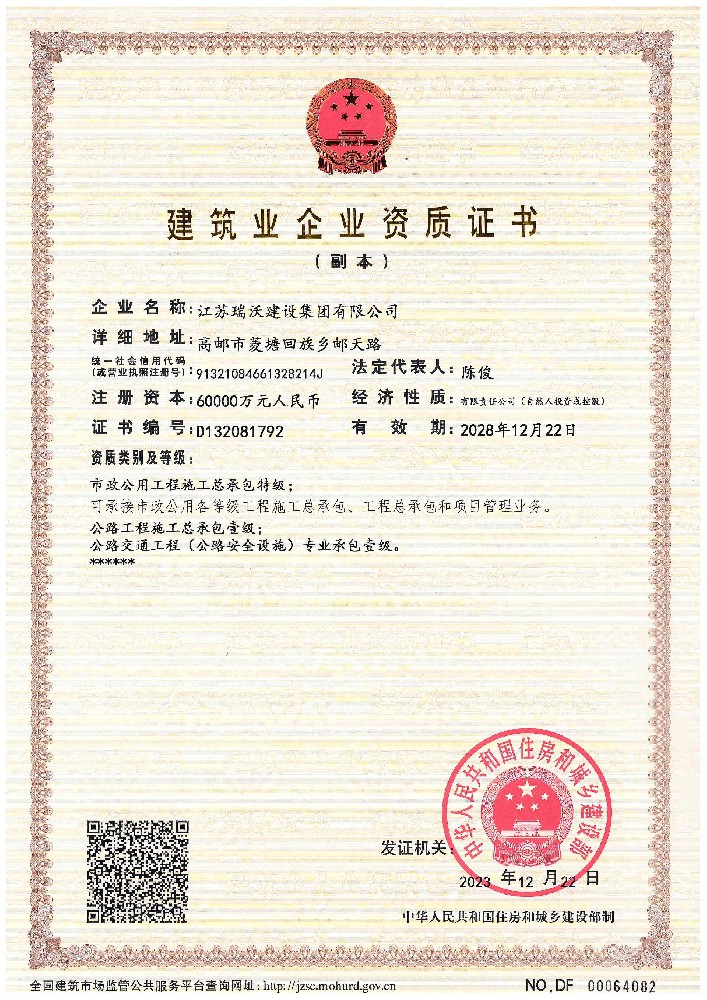 公司現(xiàn)擁有市政公用工程施工總承包特級(jí),工程設(shè)計(jì)市政行業(yè)甲級(jí),公路工程施工總承包一級(jí)、建筑工程施工總承包二級(jí)等資質(zhì)。目前公司下設(shè)弘瑞、天瑞、金遠(yuǎn)、盛瑞等全資子公司,擁有江蘇欣瑞交通工程檢測(cè)有限公司,成立了揚(yáng)州、南京、上海、北京、深圳、貴州、重慶、云南、青海、西藏、內(nèi)蒙、大慶、寧夏、湖南、海外等分公司。公司按照現(xiàn)代企業(yè)管理模式,實(shí)行董事會(huì)負(fù)責(zé)制,下設(shè)董事會(huì)、監(jiān)事會(huì)、董事長室、總經(jīng)理室、副總經(jīng)理室、總工室、綜合管理部、財(cái)務(wù)核算中心、市場(chǎng)發(fā)展部、工程管理部等部門。